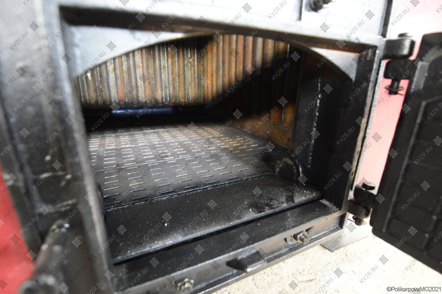 Дрова сгорают на колосниковой решетке, в которой предусмотрены отверстия для провала золы в расположенный под колосниками зольный короб.